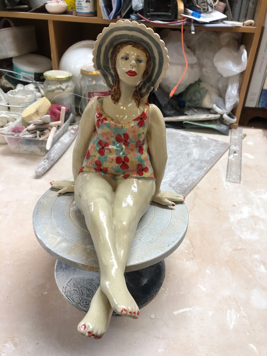 These ceramic bathing beauties are suitable for adorning exterior waterfeatures or as interior decoration; sideboards, bathrooms or bookshelves. Each figure is approximately 22cm in length and 12 cm wide. These dimensions vary slightly depending on the pose of the figure.