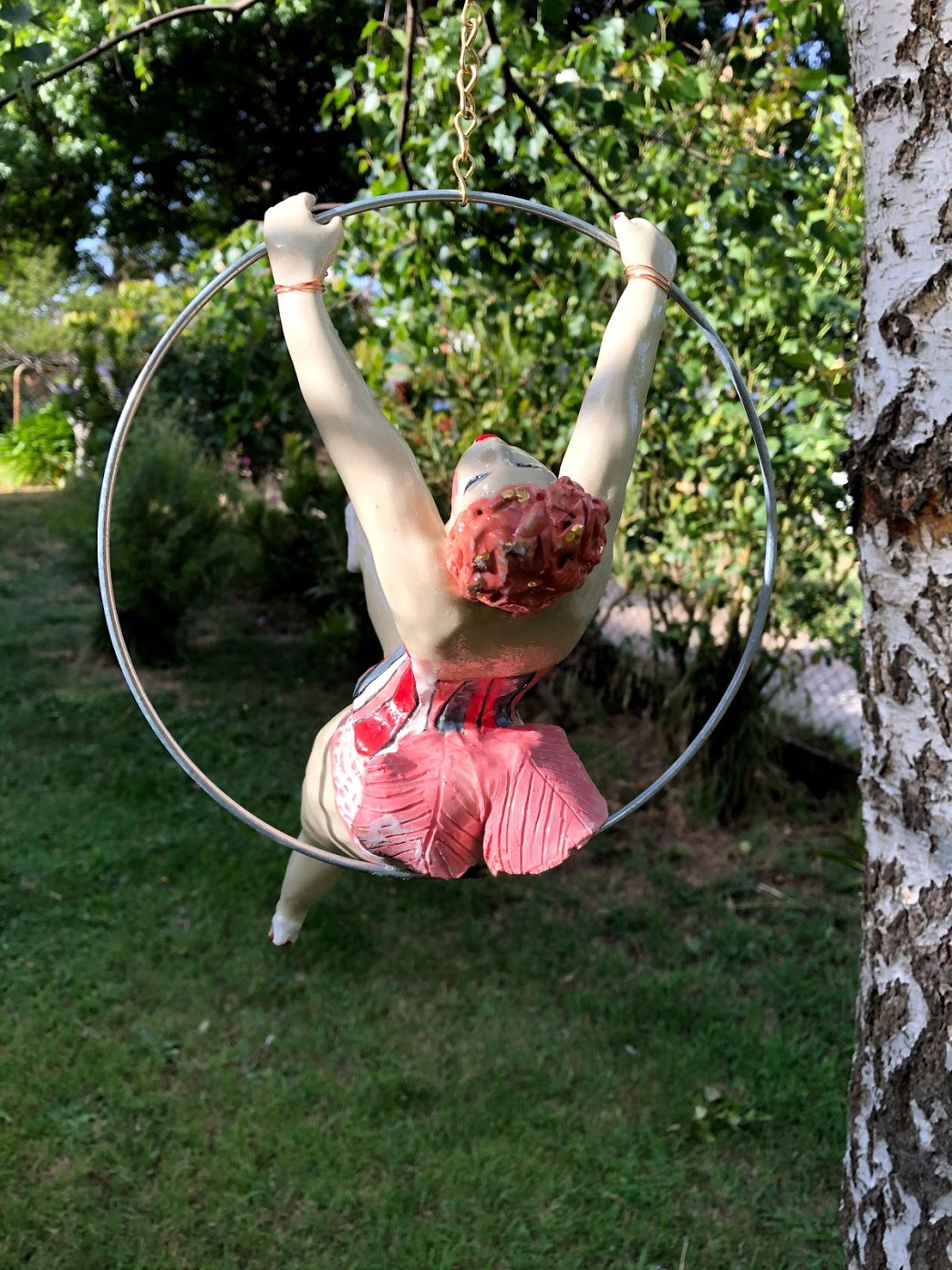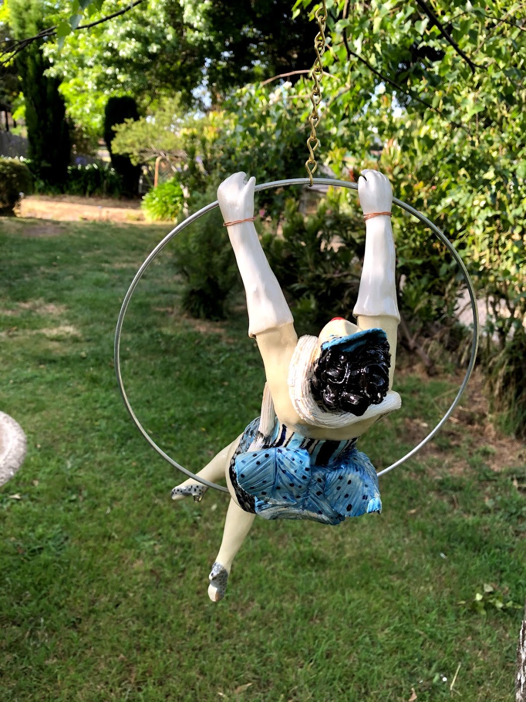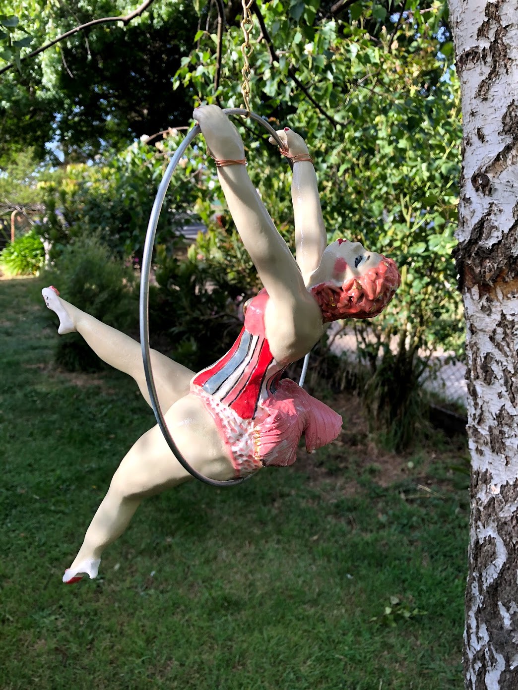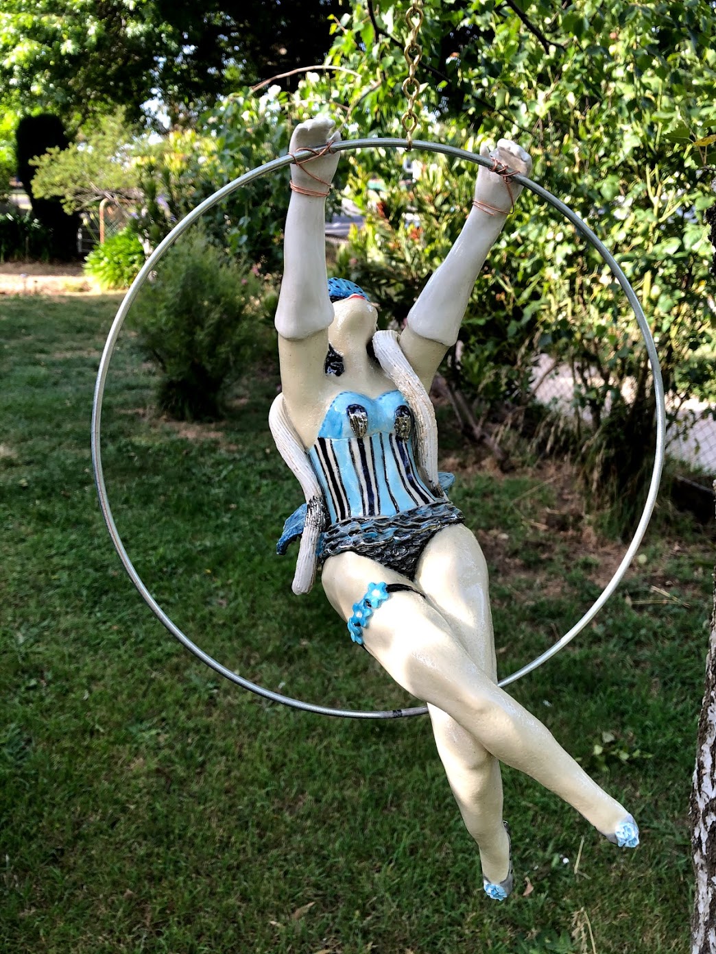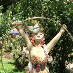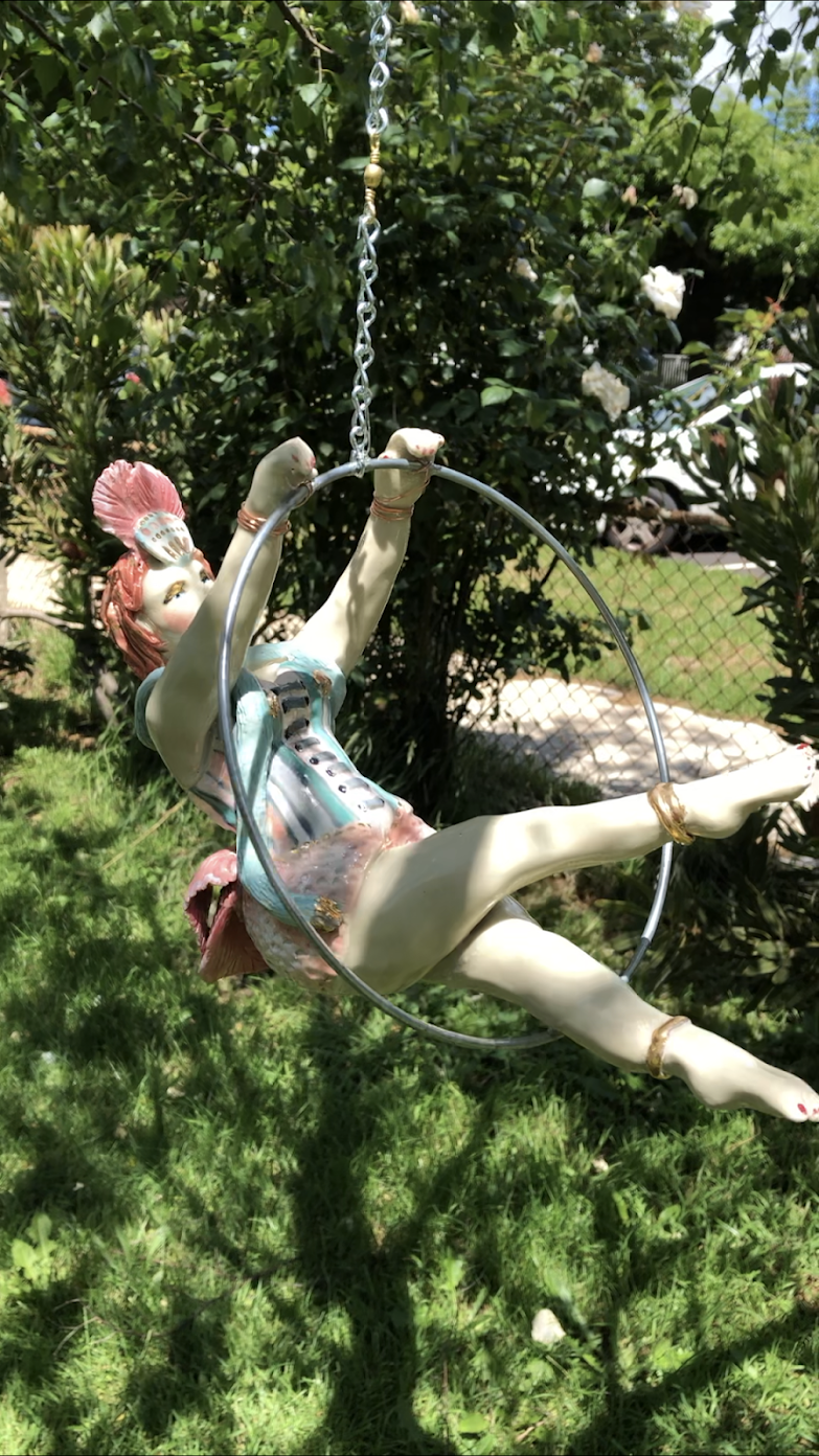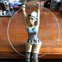 All individual, the burlesque ladies swing in a ring of 22.5 to 25cm. The ceramic figures are all the same size and the ring size varies according to the pose. All priced at 300.00 including free postage within Australia